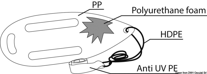 Aus Polyethylen mit Polyurethanschaumfüllung. Mit Schulterriemen (Umfang ca. 100 cm) und Schleppriemen (ca. 200 cm), Gewicht ca. 1.2kg